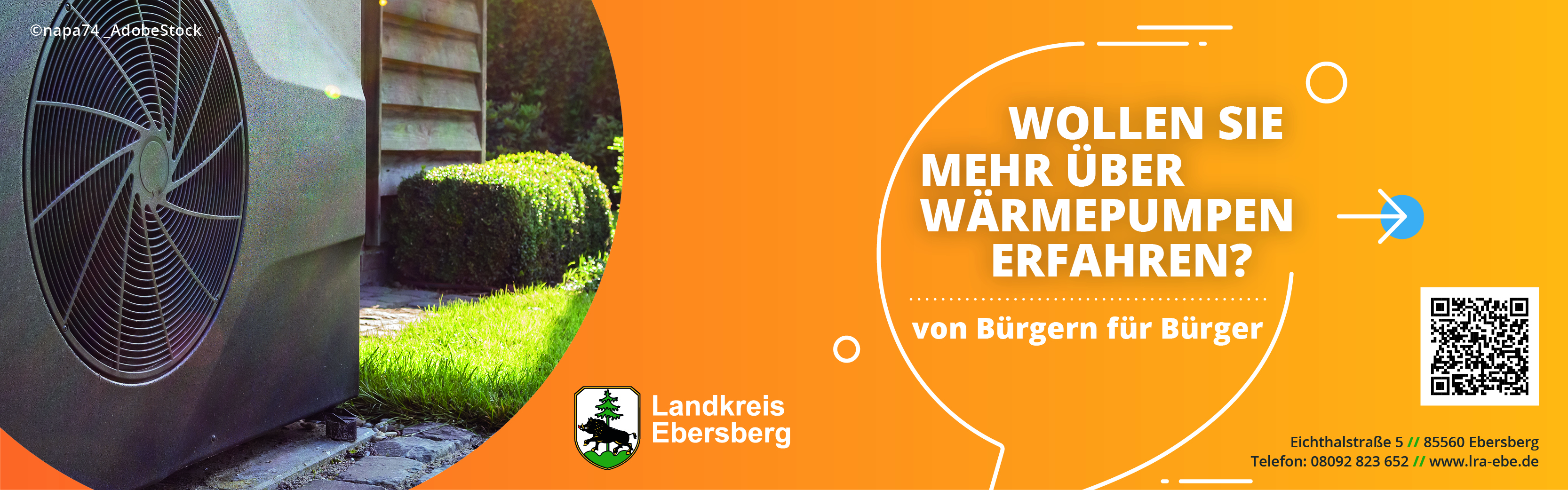 Eine Wärmepumpe ist nicht nur heute eine klimafreundliche, effiziente Lösung für die Heizung in den eigenen vier Wänden, sondern auch zukunftsfähig und vielseitig einsetzbar. Sie nutzt erneuerbare Wärme aus der Luft oder dem Grundwasser oder der Erde und senkt so CO2-Emissionen sowie laufende Energiekosten. Das Angebot des Landkreises Ebersberg finden Sie auf der Homepage des Landratsamtes.