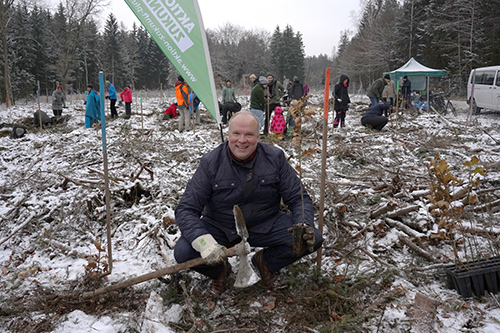 Im Landkreis Ebersberg fand die diesjährige Herbstpflanzung am 8. November statt. Gemeinsam mit Landrat Robert Niedergesäß und der Energieagentur Ebersberg-München pflanzten Spenderinnen und Spender der Aktion Zukunft+ sowie weitere Ehrenamtliche an einem Tag rund 2.700 Bäume der insgesamt 4.000 finanzierten Bäume, darunter Eichen und Buchen, die unter anderem auf einer Schneebruchfläche angepflanzt wurden.