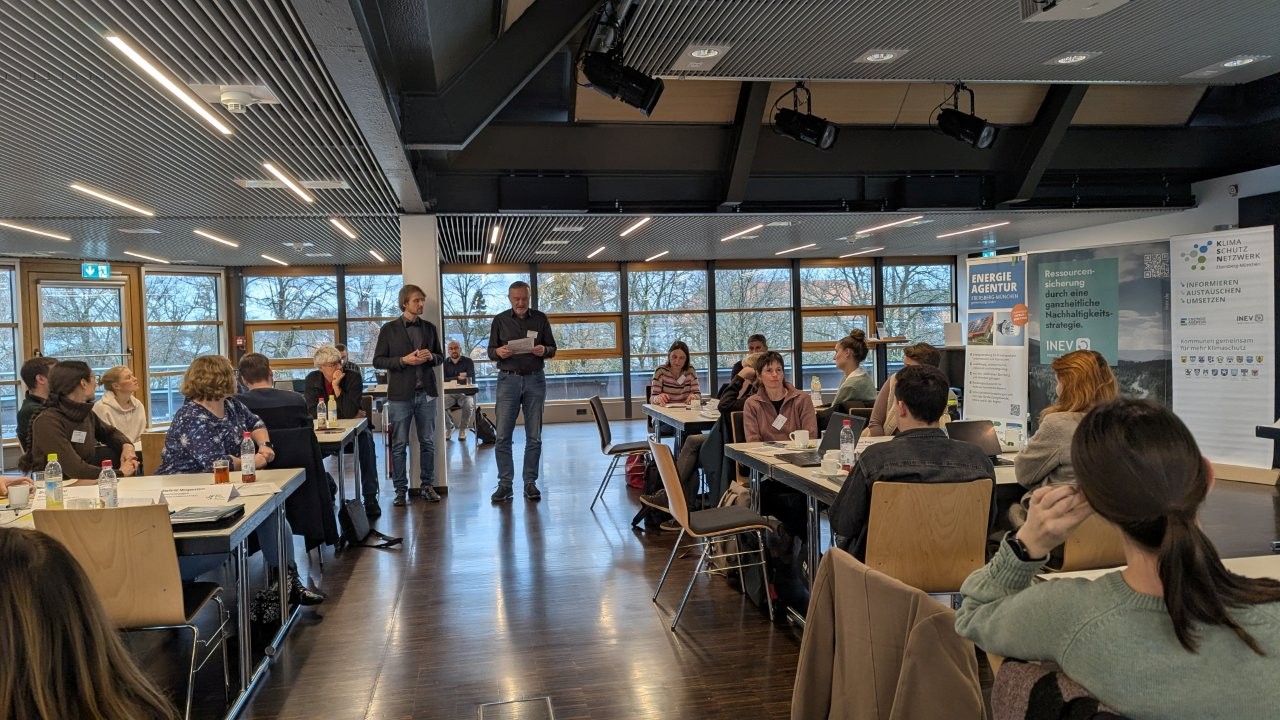 Beim dritten Arbeitstreffen des kommunalen Klimaschutznetzwerks Ebersberg-München am Dienstag (25.11.) in Neubiberg setzten sich die Teilnehmenden mit Ressourceneffizienz und den Möglichkeiten und Herausforderungen bei Projekten im Bereich der Kreislaufwirtschaft in Kommunen auseinander. Dabei erhielten sie Impulse von einer Vorreiter-Kommune in Sachen Zirkularität, der Stadt Haar, und vom Ressourcen Forum Austria. Der Schwerpunkt des Tages lag auf dem Austausch untereinander und dem Erarbeiten von konkreten Projekten und Maßnahmen.