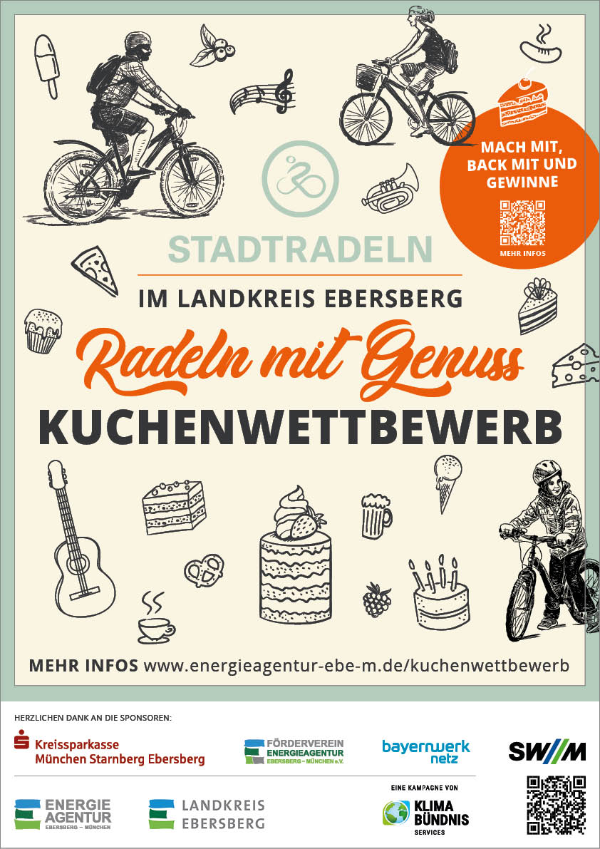 Bereits zum zehnten Mal findet das STADTRADELN im Landkreis Ebersberg statt – in diesem Jahr vom 20. Juni bis 10. Juli. Und das möchten das Landratsamt Ebersberg und die Energieagentur Ebersberg-München mit einem ganz besonderen Programm feiern! „Radeln mit Genuss" ist das Thema und zum Genuss – wie auch zu einem Jubiläum – gehört natürlich ein schönes Stück Kuchen.