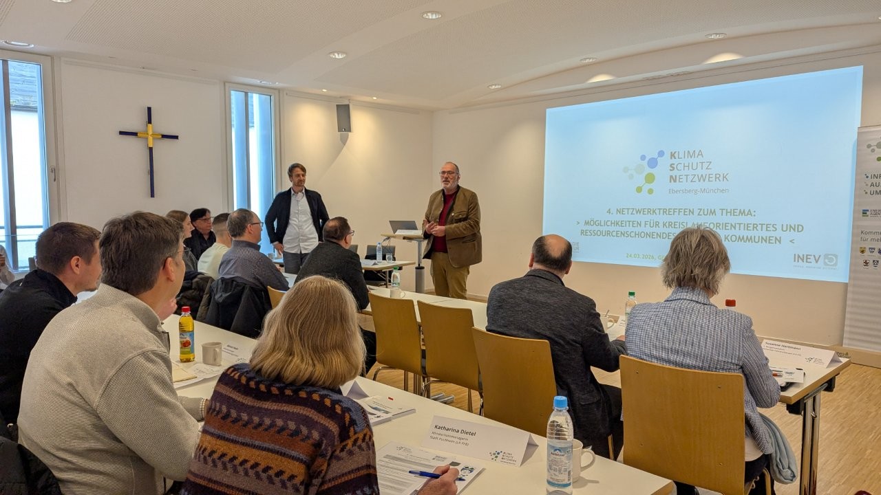 Beim vierten Netzwerktreffen des kommunalen Klimaschutznetzwerks Ebersberg-München am Dienstag (24.03.) in Hohenbrunn setzten sich die Vertreter der teilnehmenden Kommunen intensiv mit dem Leitthema „Sanieren im Bestand statt Neubau" auseinander. Außerdem wurden die Zielsetzungen der einzelnen Gemeinden – etwa bei Energieverbrauch, CO?-Einsparung, Flächenentsiegelung und Wasserrückhaltung – besprochen und festgelegt.